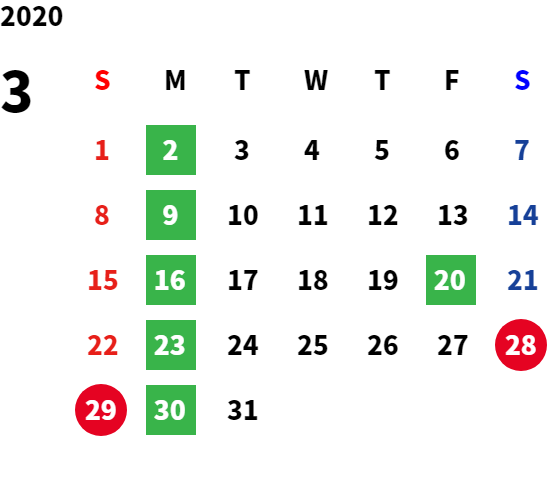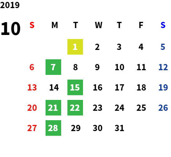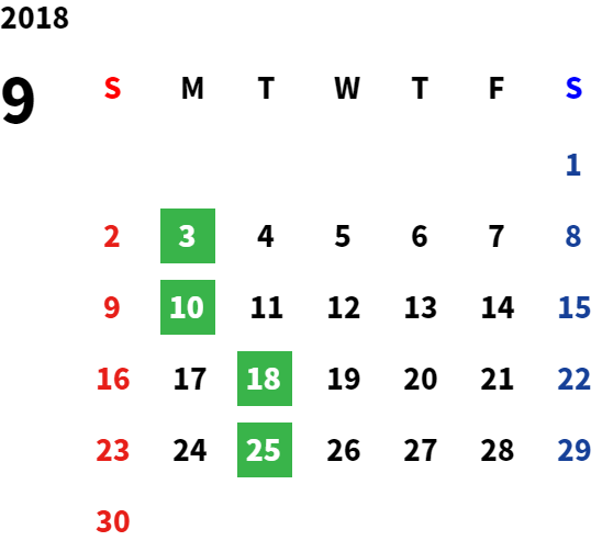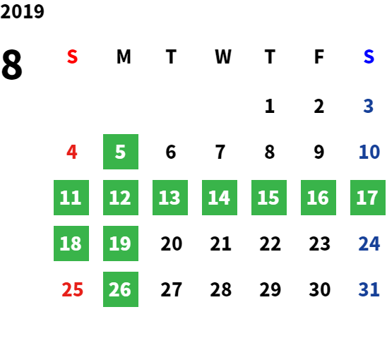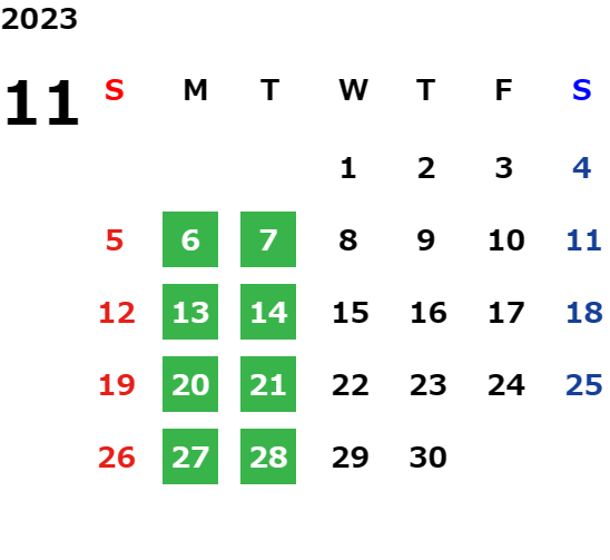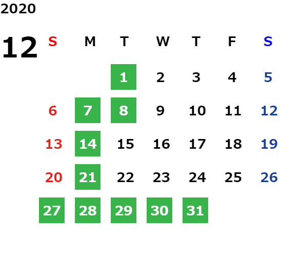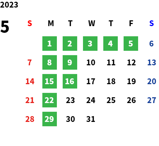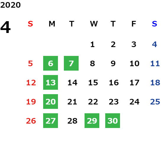 営業日カレンダー
